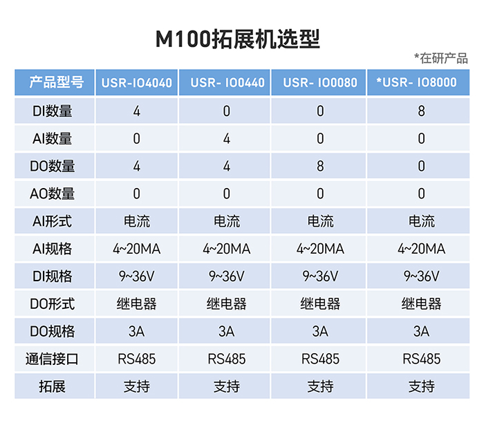 近期我們對(duì)M100進(jìn)行了重大升級(jí)!新版本的M100支持靈活拓展IO,最大支持拓展6組拓展機(jī),您可以根據(jù)不同的應(yīng)用場景,選擇不同的拓展機(jī),實(shí)現(xiàn)多種信號(hào)的輸入和輸出。
