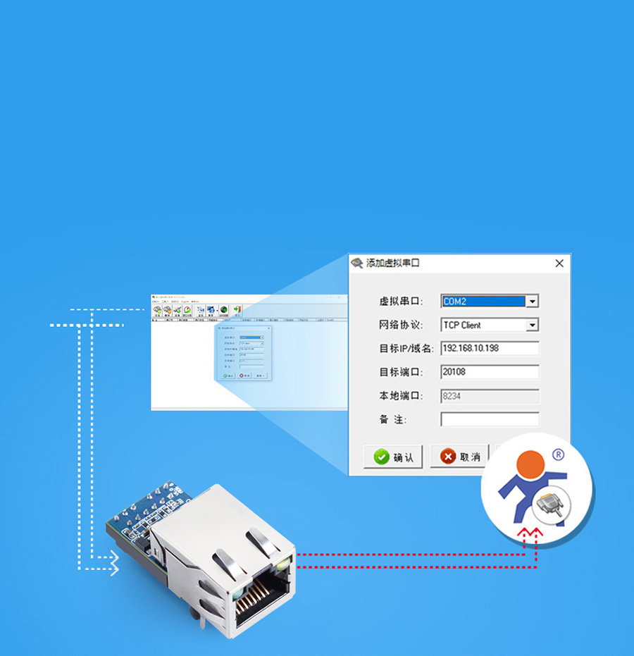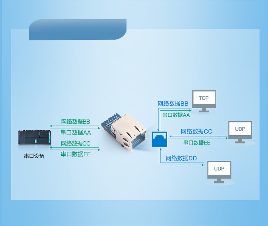 傳統(tǒng)的串口設(shè)備多數(shù)不具備聯(lián)網(wǎng)能力,K5集成優(yōu)化的TCP/IP協(xié)議棧,