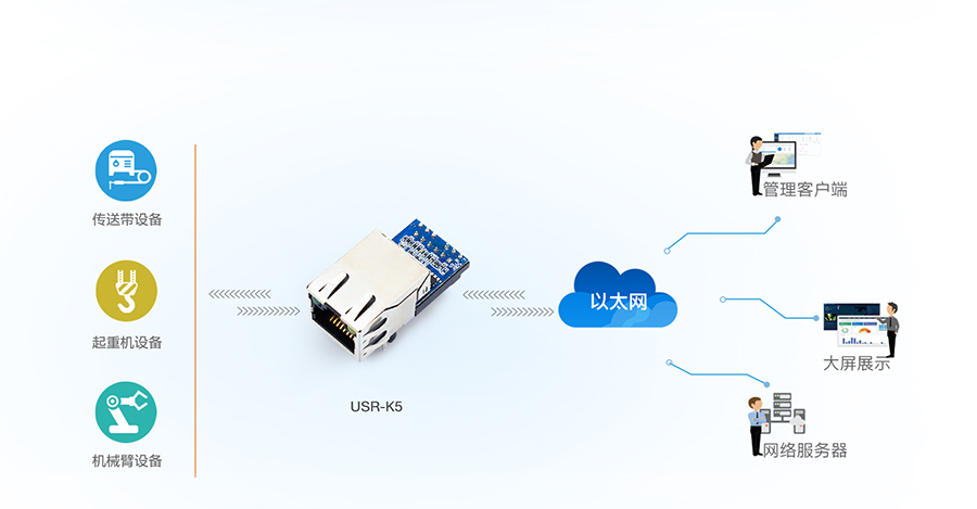 K5支持通過網(wǎng)絡(luò)協(xié)議、串口協(xié)議、Web配置、AT指令等多種方式,