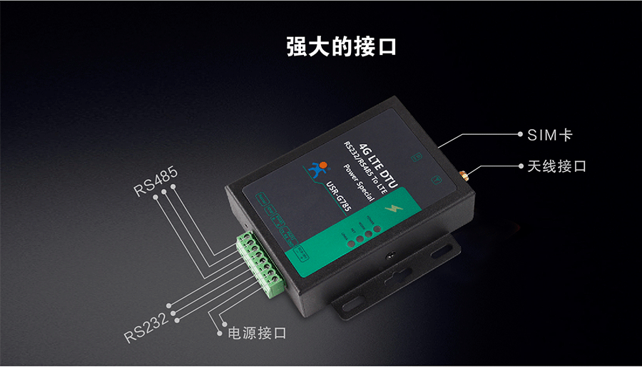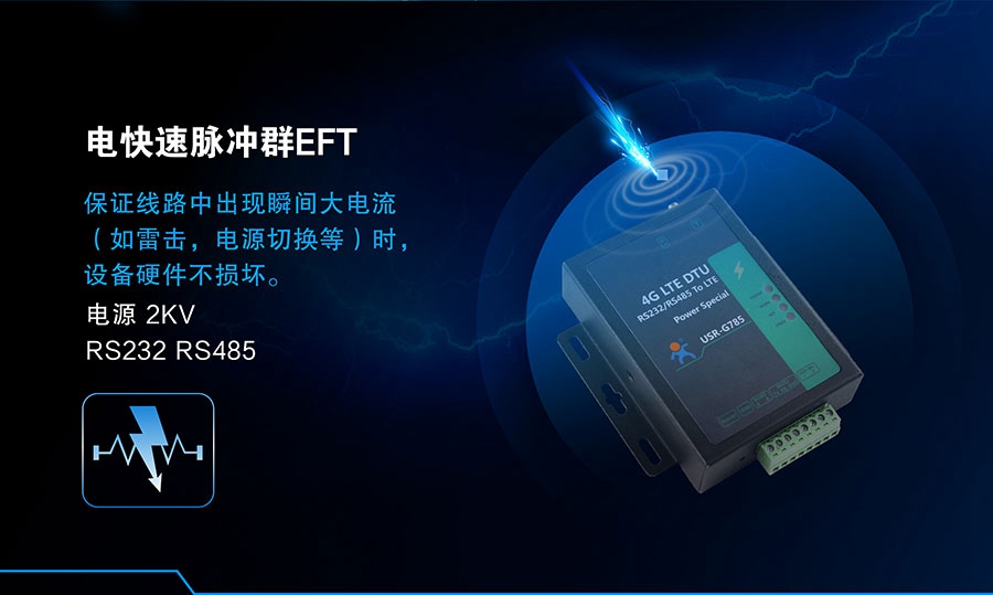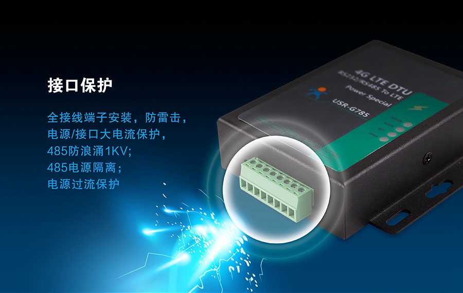 USR-G785 是一款高穩(wěn)定、抗干擾的工業(yè)級(jí)無線數(shù)據(jù)傳輸終端,專為電力行業(yè)設(shè)計(jì),為苛刻環(huán)境下無人值守的電力項(xiàng)目,提供穩(wěn)定的網(wǎng)絡(luò)通信。既可以實(shí)現(xiàn)常規(guī) DTU 的數(shù)據(jù)透?jìng)鞴δ�,也可以�?shí)現(xiàn)電力專屬協(xié)議透?jìng)鞴δ堋Mㄟ^簡(jiǎn)單的 AT指令進(jìn)行設(shè)置,即可輕松使用本產(chǎn)品實(shí)現(xiàn)串口到網(wǎng)絡(luò)服務(wù)器的雙向數(shù)據(jù)傳輸。