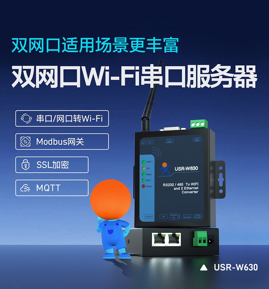 USR-w630作為無線AP使用,提供Wi-Fi接入點(diǎn)功能,可實(shí)現(xiàn)串口終端與