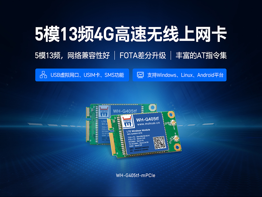 G405tf-mPCIe支持移動、聯(lián)通2/3/4G,電信4G網絡信號,