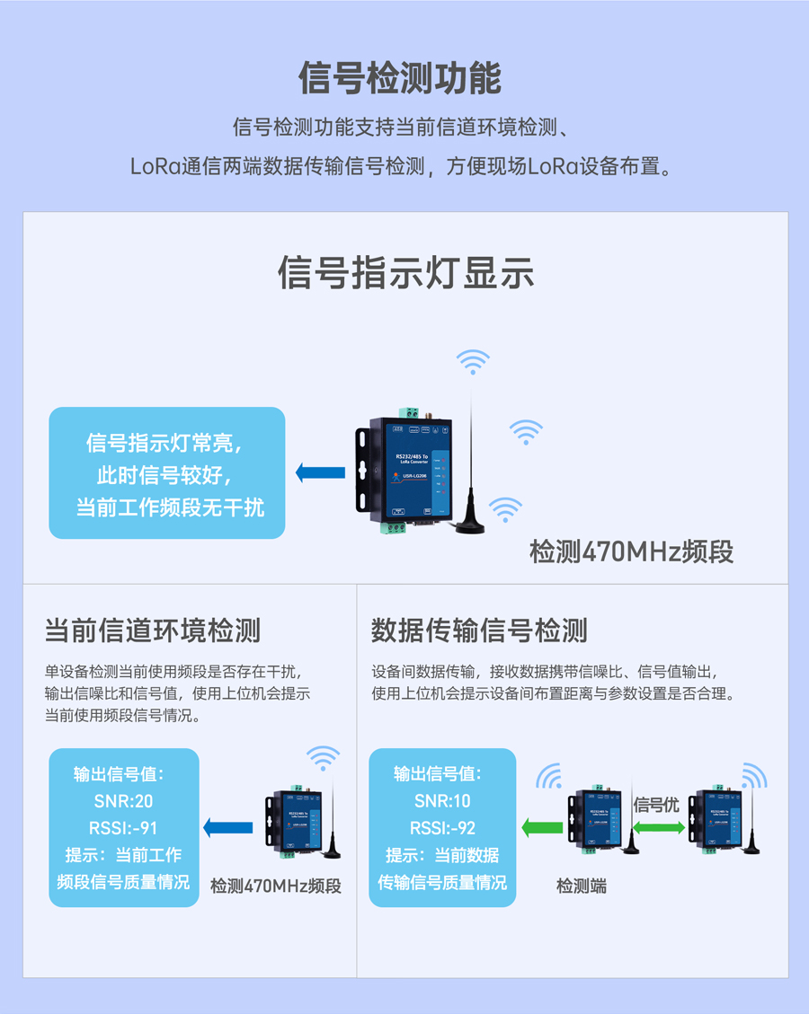 指示燈顯示信號(hào)強(qiáng)度、使用信道干擾檢測(cè)、數(shù)據(jù)通信過(guò)程檢測(cè)