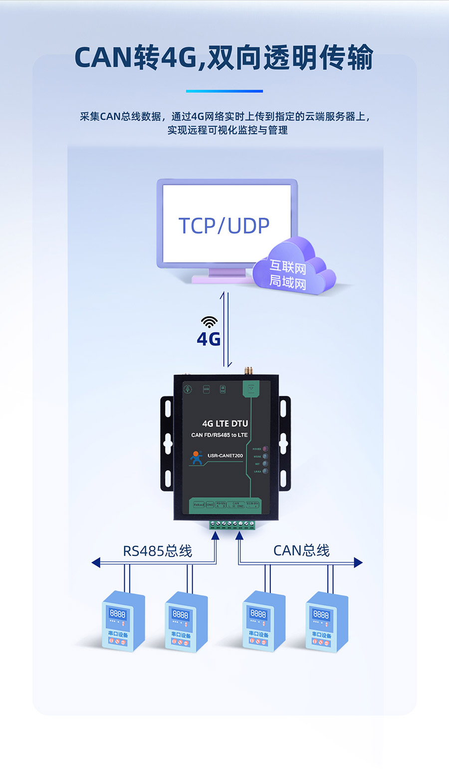 支持CAN和RS485,端子接口,波特率1200~460.8Kbps
