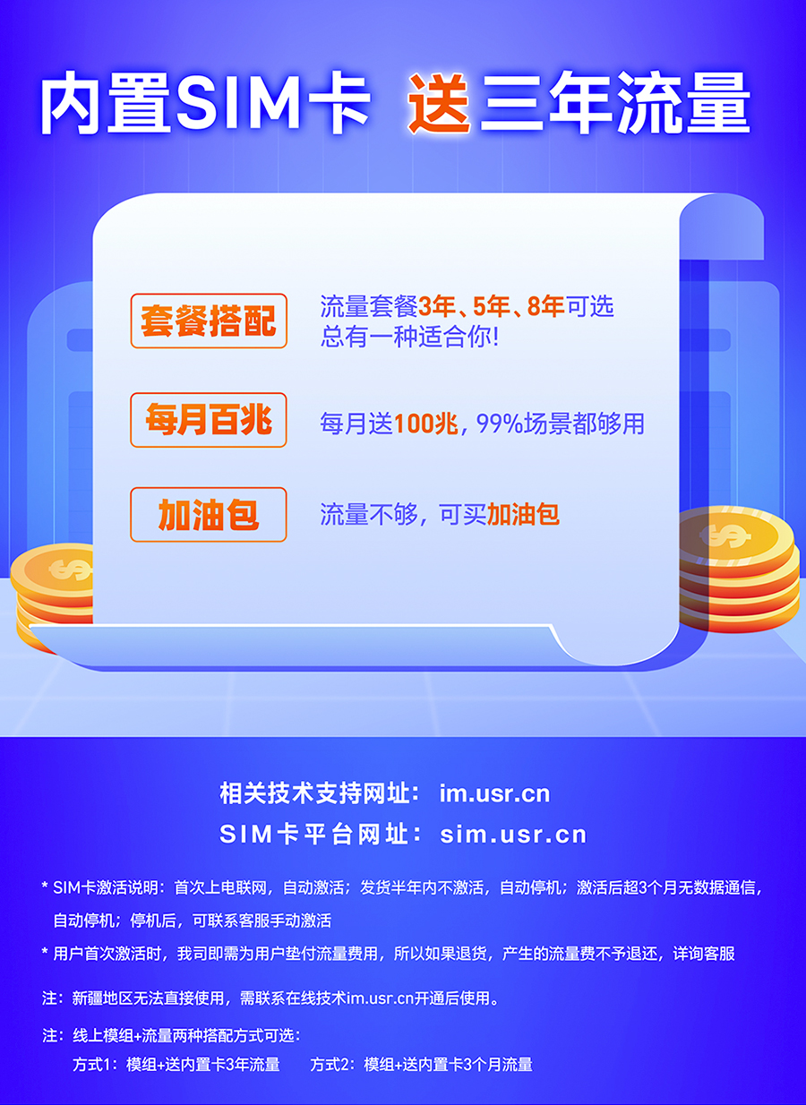 默認(rèn)內(nèi)置貼片卡或使用自帶SIM卡卡槽