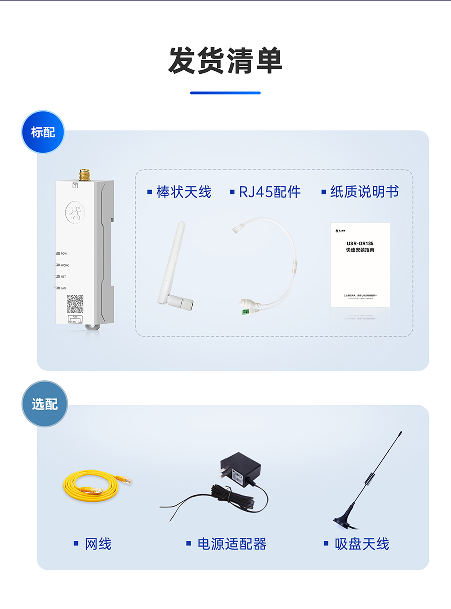 快速鏈接: 多功能數(shù)采儀 USR-SC系列 可拓展的物聯(lián)網(wǎng)控制器 USR-EG628 真工業(yè)級交換機 USR-ISG系列 Wi-Fi加強版4G工業(yè)路由器 USR-G806w 5G路由器天花板WiFi6 USR-G817 積木式邊緣網(wǎng)關(guān) USR-M300 4G 口紅DTU USR-DR154 4G商用路由器 USR-G805s