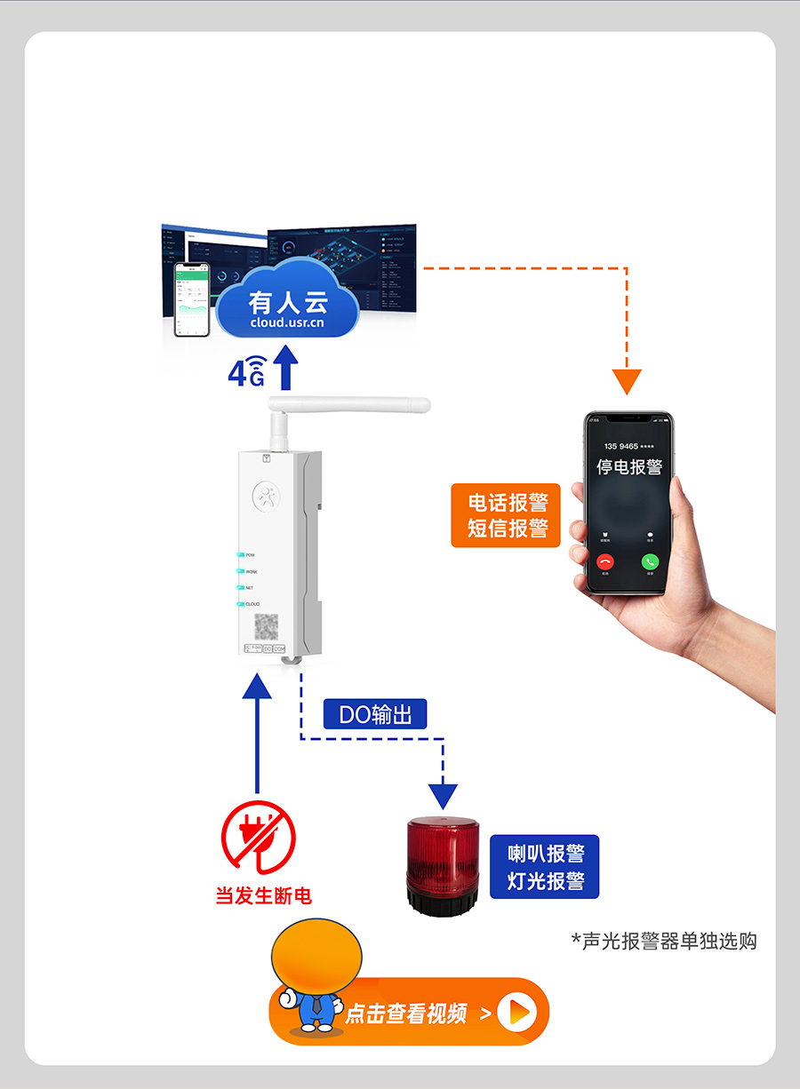 報(bào)警器的供電負(fù)極,斷電報(bào)警器的“DO”接到聲光報(bào)警器的供電正極