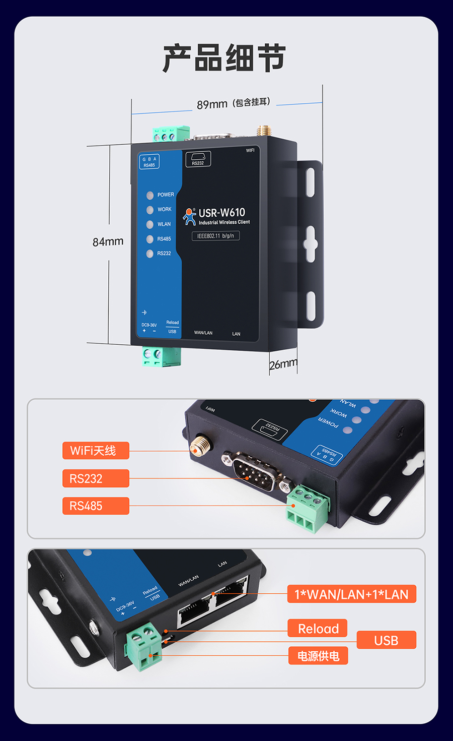 RJ45接口:10/100自適應,符合IEEE 802.3