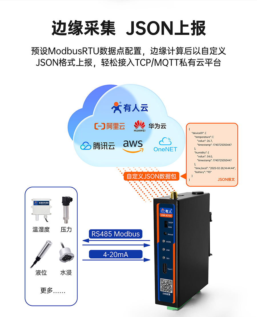 支持有人云�報、支持TCP、MQTT通道JSON格式�報