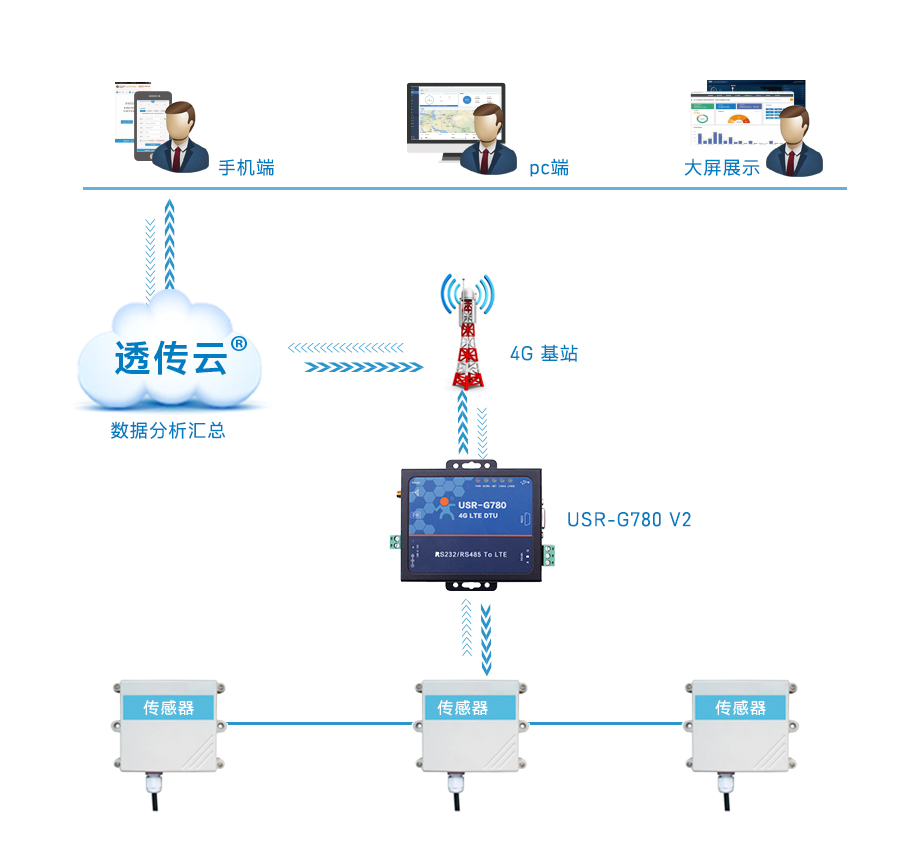 網(wǎng)絡(luò)透傳:即透明傳輸,G780 V2接收什么就發(fā)送什么,快速連接串口設(shè)備和網(wǎng)絡(luò)服務(wù)器,將串口數(shù)據(jù)快速轉(zhuǎn)成4G傳輸。