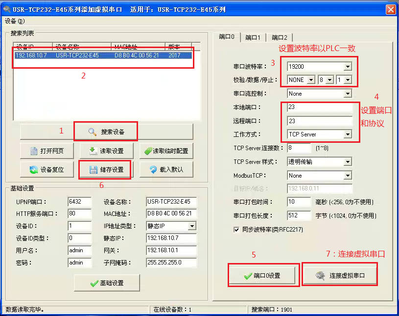 4:設(shè)置串口服務(wù)器參數(shù):