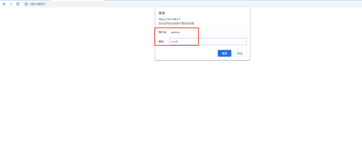 4、進(jìn)入內(nèi)置網(wǎng)頁進(jìn)行設(shè)置,通過瀏覽器搜索設(shè)備IP,登錄用戶名與密碼未修改過可使用默認(rèn)的,用戶名與密碼都為admin。