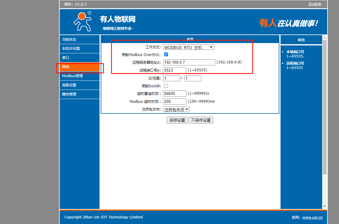 必須勾選MODBUS OVER協(xié)議,保存重啟即可。