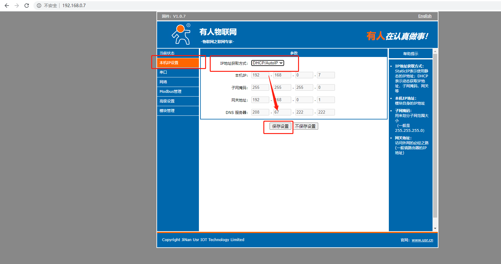2.給電腦設置靜態(tài)IP,設置成與M511同一網(wǎng)段,M511默認IP:192.168.0.7