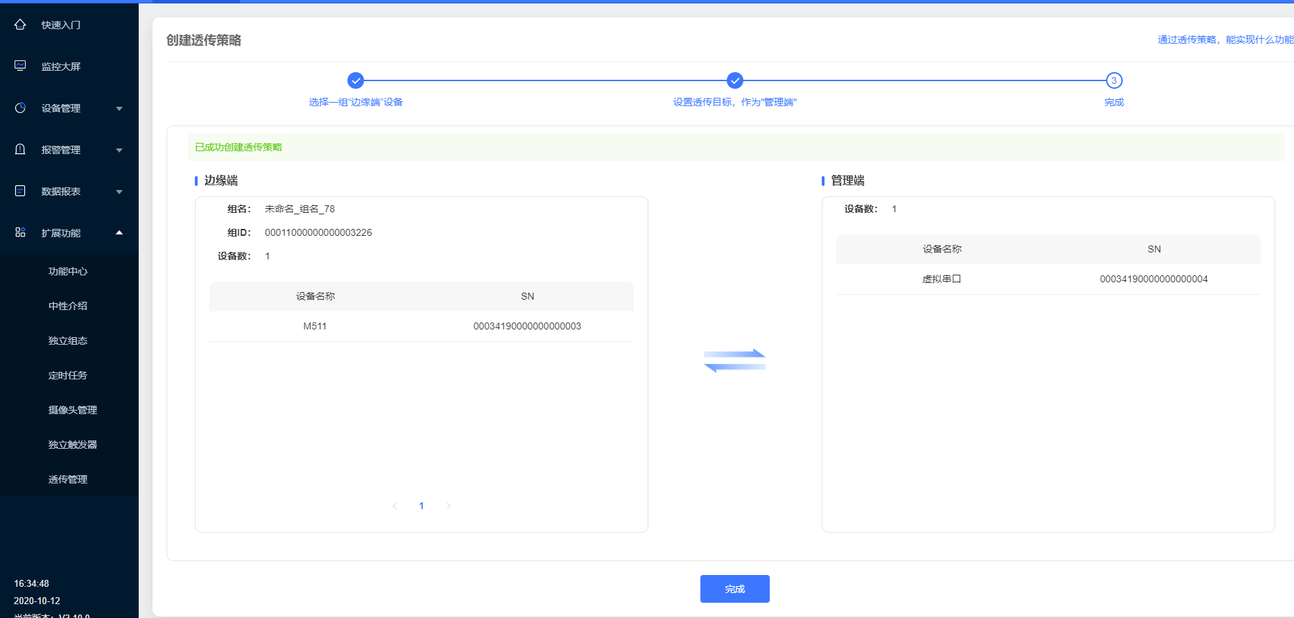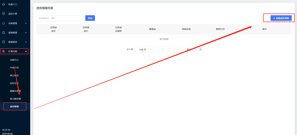 7.點擊擴展功能,選擇透傳管理,創(chuàng)建透傳策略
