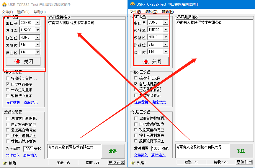 11.用串口調(diào)試助手打開虛擬串口生成的串口和M511的串口(兩個串口參數(shù)必須相同),進行數(shù)據(jù)互發(fā)
