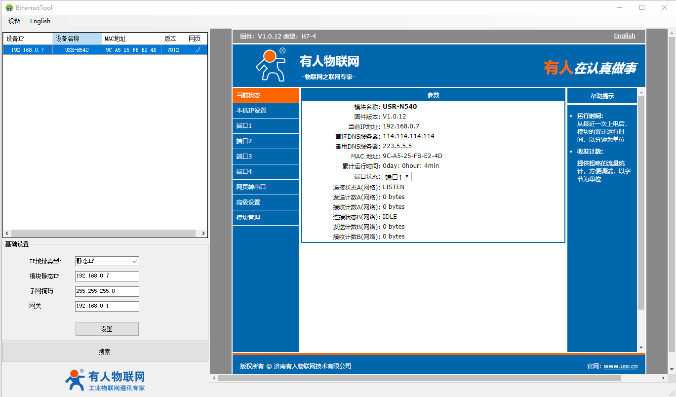 2、USR-N540-H7設(shè)置軟件http://wy2006.cn/Download/383.html