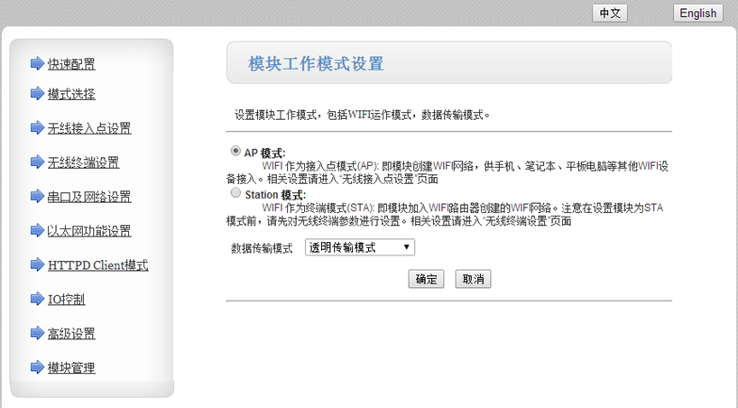 2:網(wǎng)頁(yè)設(shè)置支持兩種工作模式AP模式 STA模式。