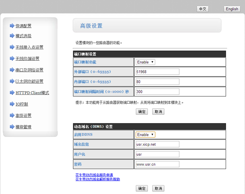 11:模塊支持使用動(dòng)態(tài)域名-花生殼:具體域名可以到花生殼注冊(cè)。支持端口映射UPNP。前提是模塊連接的無(wú)線路由UPNP開啟,一般是開啟的。使用動(dòng)態(tài)域名的前提是必須保證路由器的WAN口IP是公網(wǎng)IP,具體查詢方式,將WAN口地址粘貼到百度,可以查詢到是否是公網(wǎng)IP.