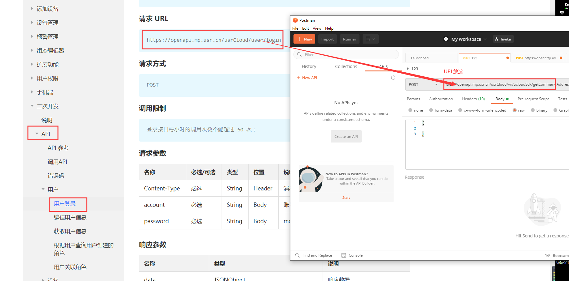 1、在接口文檔中找到用戶(hù)登錄接口(二次開(kāi)發(fā)-API-用戶(hù)-用戶(hù)登錄)