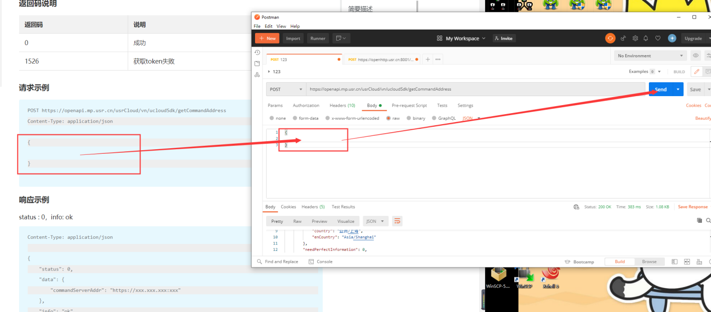 6、將請(qǐng)求示例復(fù)制到body的raw中,之后點(diǎn)擊Send,會(huì)生成一個(gè)鏈接,這個(gè)鏈接是命令下發(fā)地址