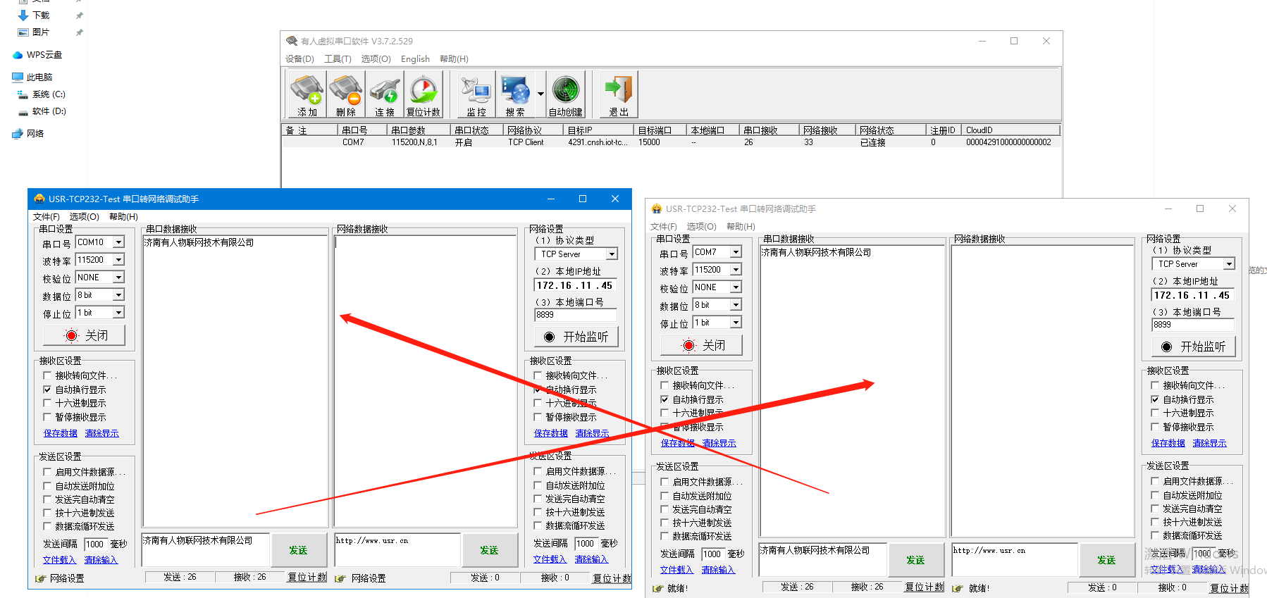 有人產(chǎn)品ID上云和虛擬串口軟件一對(duì)一通訊示例