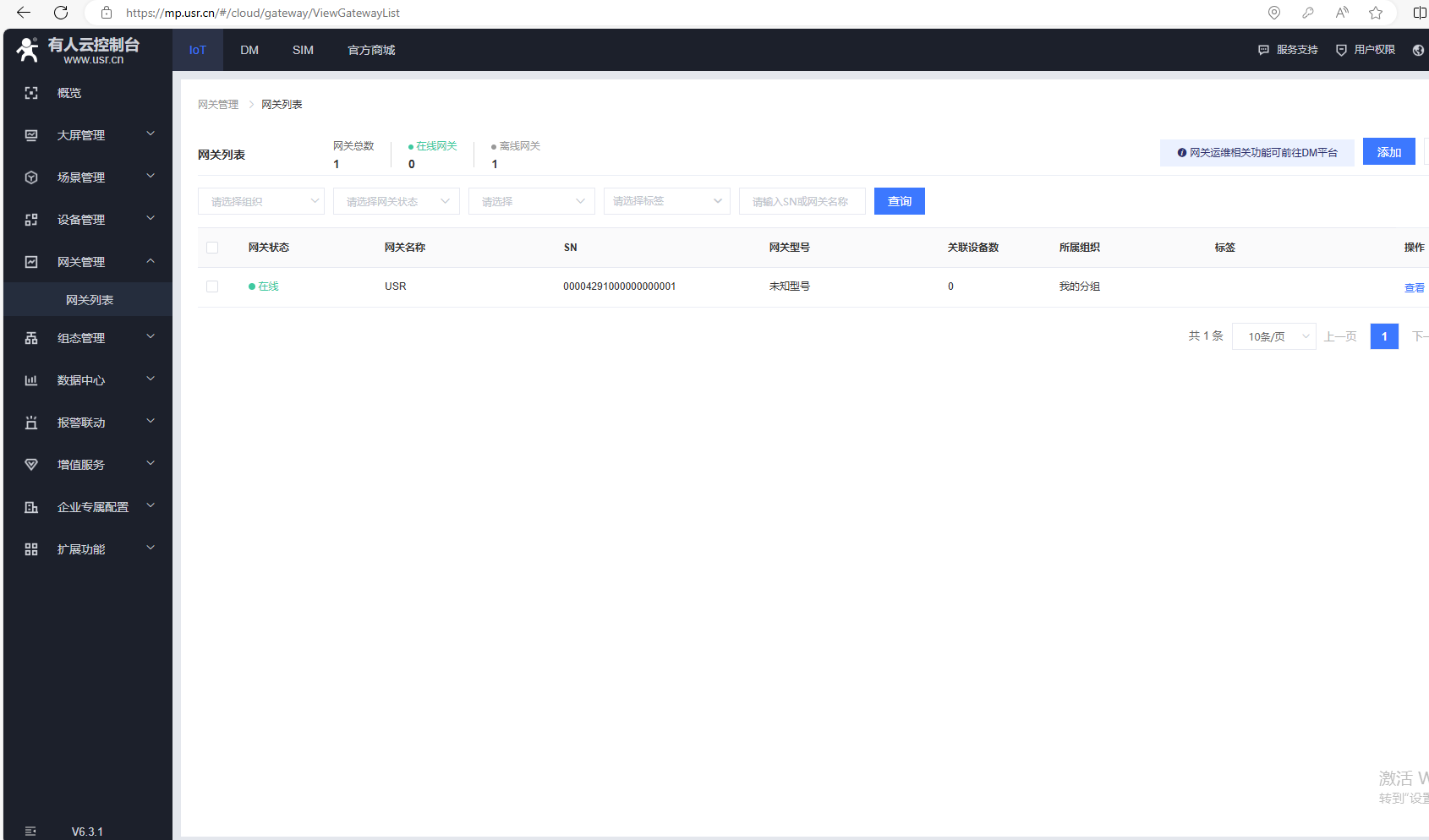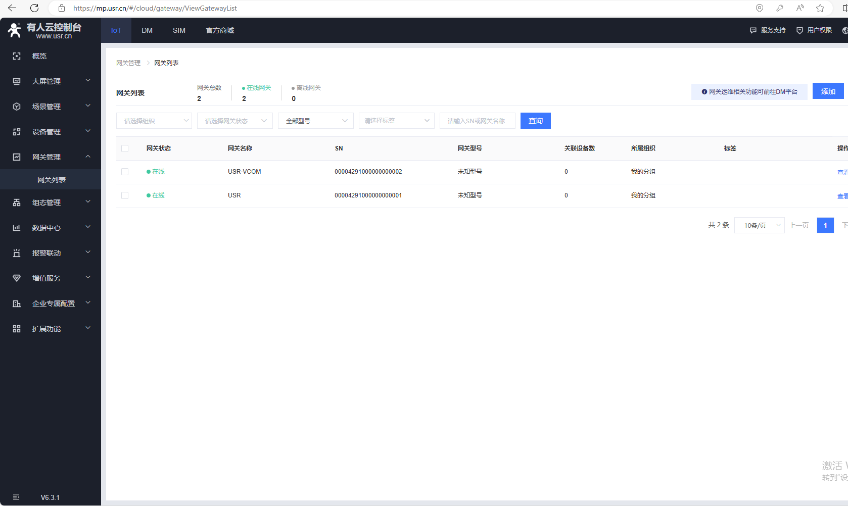 添加完,有人云,網(wǎng)關(guān)列表,USR-VCOM在線。