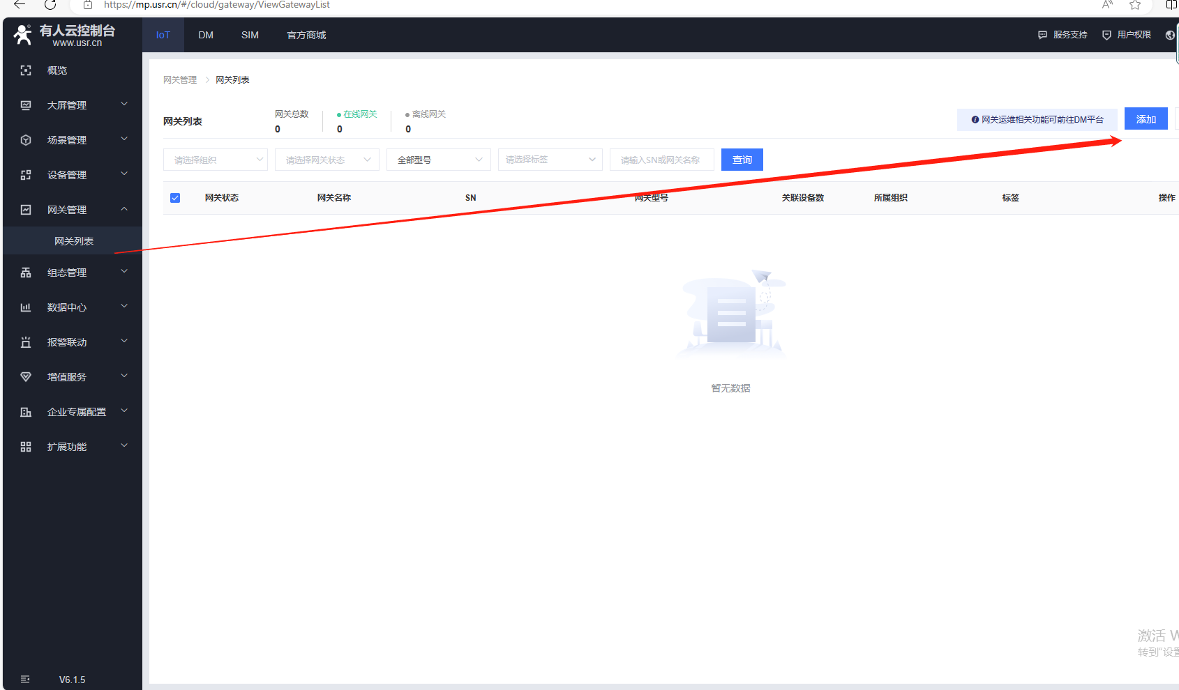 1、點(diǎn)擊網(wǎng)關(guān)管理,網(wǎng)關(guān)列表,點(diǎn)擊添加,點(diǎn)擊單個(gè)添加。