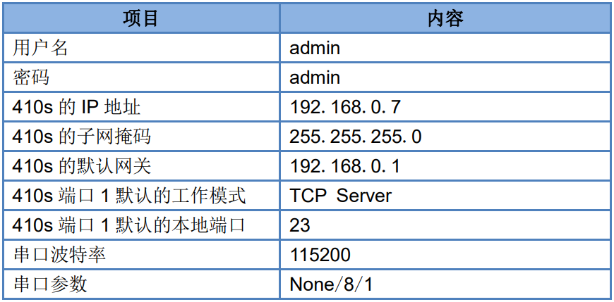 3.給電腦設置靜態(tài)IP,要與410S的IP在同一個網(wǎng)段:192.168.0.201(410S默認參數(shù)見表)。