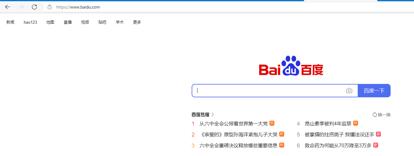 (1)未添加域名白名單之前,能正常訪問www.baidu.com