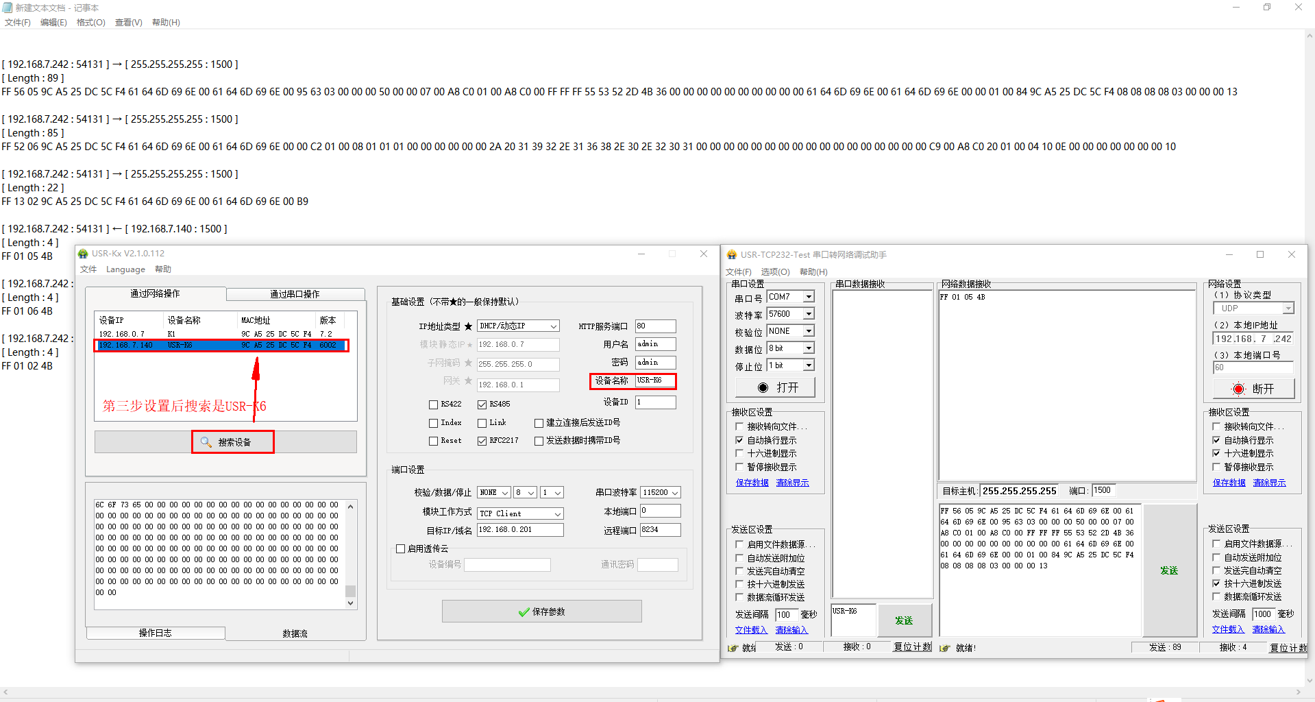 八、重新搜索,查看USR-K5名稱(chēng)是否改為USR-K6,斷電上電查看搜索是否是USR-K6