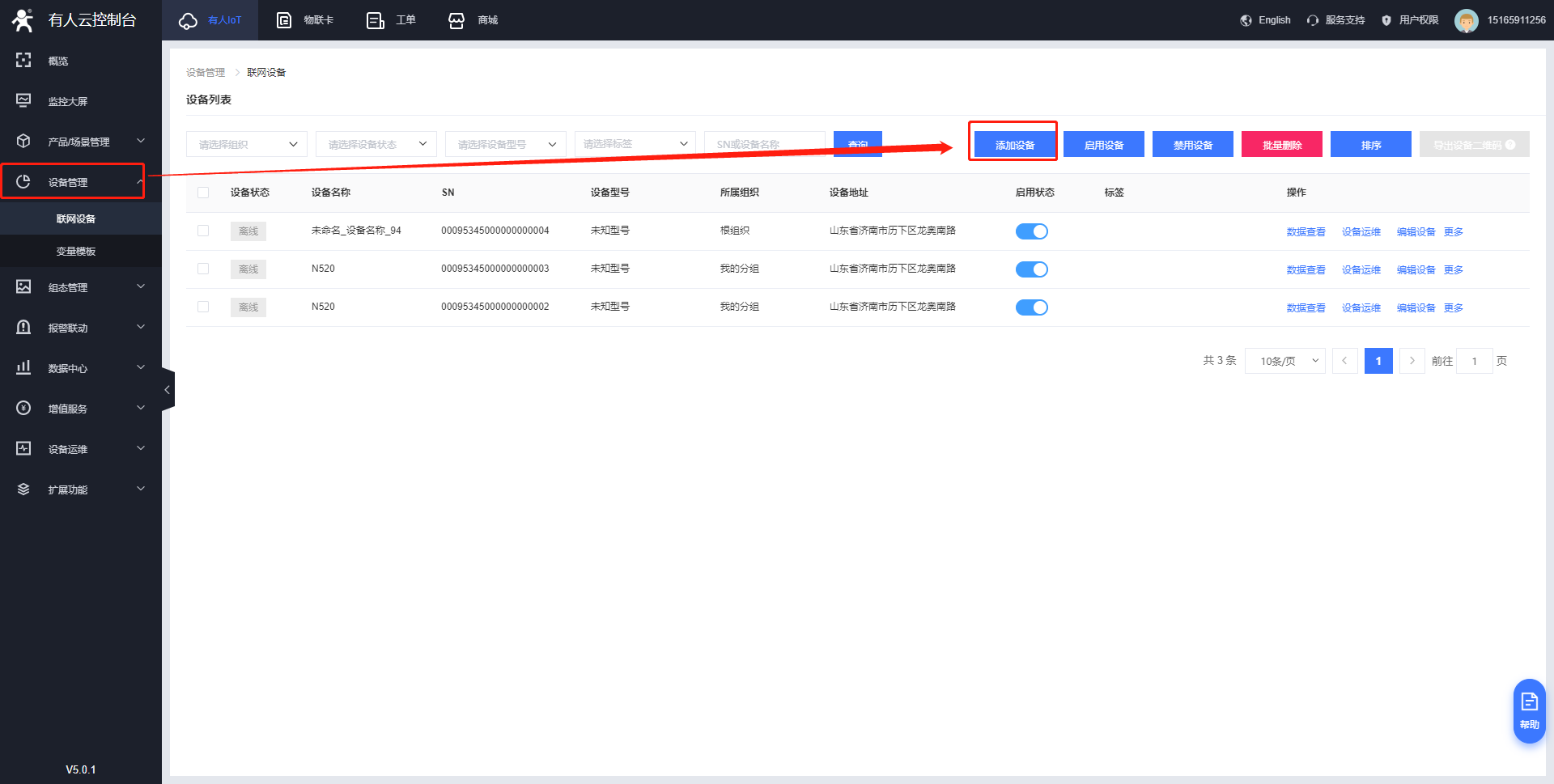 5>點擊設(shè)備列表,可以看到剛才我們添加的設(shè)備了
