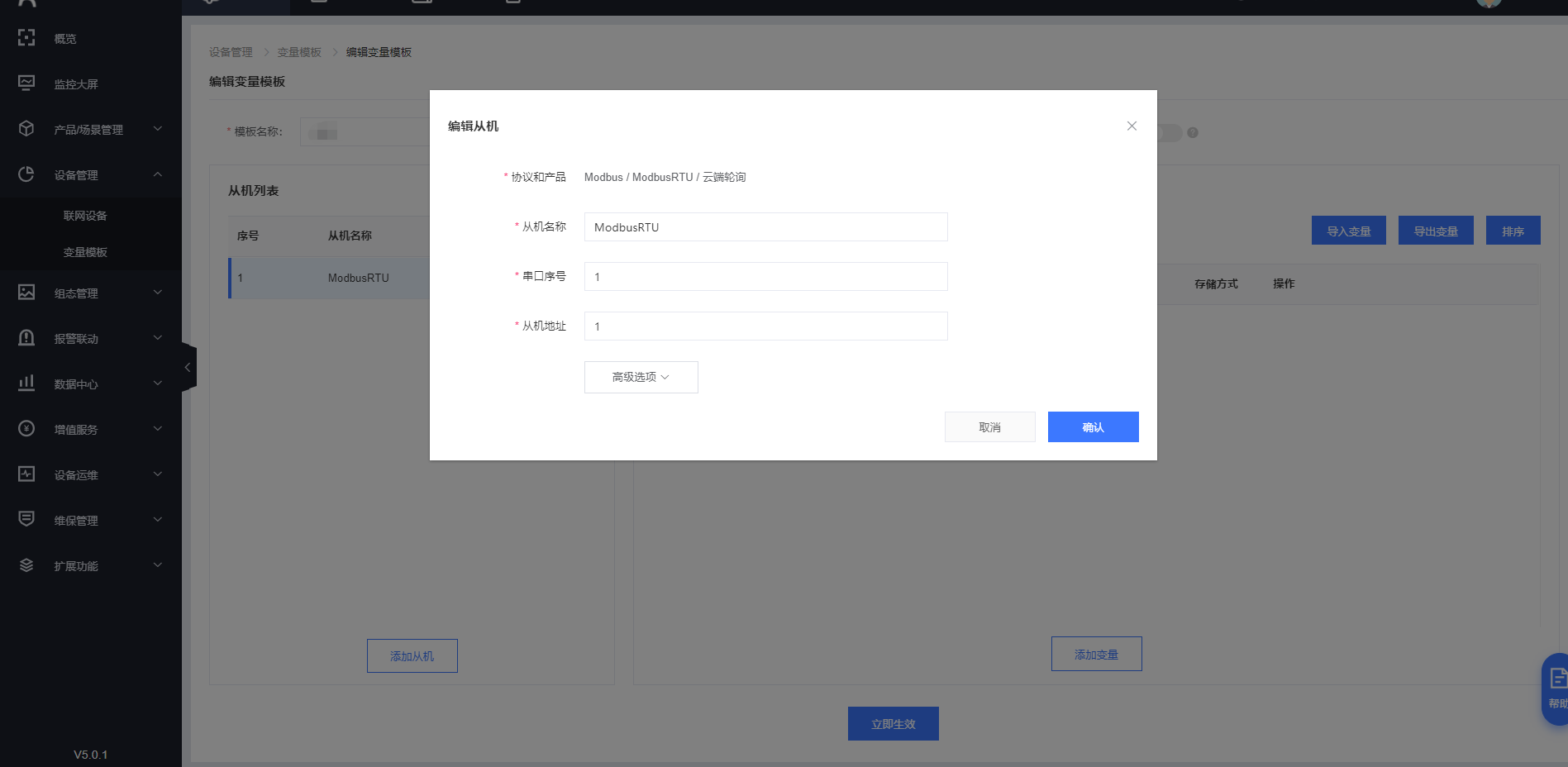 添加從機(jī)和變量,從機(jī)地址是串口設(shè)備的設(shè)備號,不清楚的話可以詢問終端設(shè)備廠家。