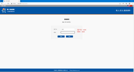 (2)在配置網(wǎng)頁界面,與直接進入設(shè)備內(nèi)置網(wǎng)頁是一樣的,需要輸入內(nèi)置網(wǎng)頁密碼:root