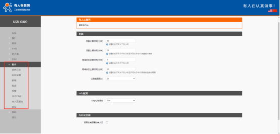 2、默認(rèn)開啟有人云服務(wù)功能。界面可以配置流量統(tǒng)計、網(wǎng)絡(luò)監(jiān)測、參數(shù)配置、固件升級、等有人云特殊功能