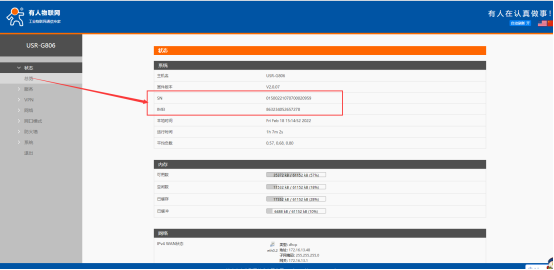 1、確認(rèn)路由器是否為有人云版,設(shè)備使用SIM卡駐網(wǎng)或者是網(wǎng)線連接設(shè)備WAN口,電腦連接192.168.1.1(如果更改過LAN口IP,根據(jù)實際輸入)進入內(nèi)置網(wǎng)頁用戶名和,密碼為root,產(chǎn)品標(biāo)簽上新增展現(xiàn)SN碼,便于平臺添加設(shè)備時識別