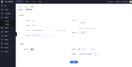 (1)點擊添加設(shè)備,之后將設(shè)備SN和IMEI添加。如果需要使用有人云監(jiān)測功能,添加時需要設(shè)備的IMEI、SN這些參數(shù),參數(shù)都設(shè)備便簽上可以查看,也可以在進入內(nèi)置網(wǎng)頁總覽界面查看