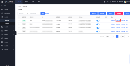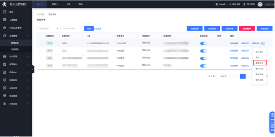 (1)在有人云的“設(shè)備列表”--“聯(lián)網(wǎng)設(shè)備”界面,找到想要進行參數(shù)配置的設(shè)備,點擊“更多”,選擇“配置網(wǎng)頁”