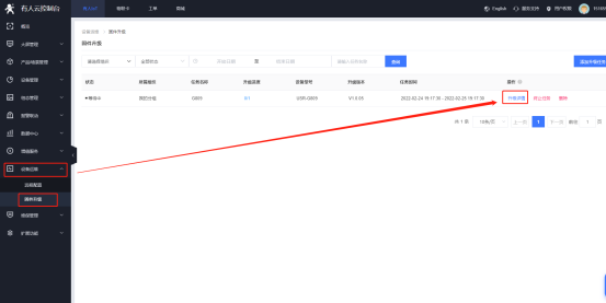 (3)在有人云的“設(shè)備運維”--“固件升級”界面可以看到所有進行升級的任務(wù),升級詳情中查看當(dāng)前固件升級進度