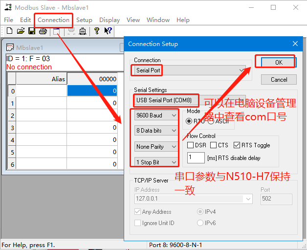 電腦端打開modbus poll和modbus slave軟件,設(shè)置軟件參數(shù)