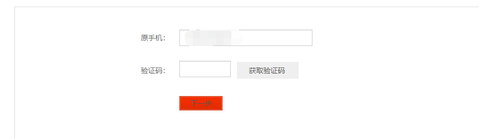 3、在彈出的界面輸入原來的手機號,獲取驗證碼后輸入驗證碼,點擊下一步