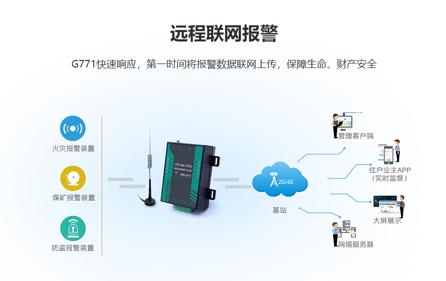 G771快速響應(yīng),第一時(shí)間將報(bào)警數(shù)據(jù)聯(lián)網(wǎng)上傳,保障生命、財(cái)產(chǎn)安全