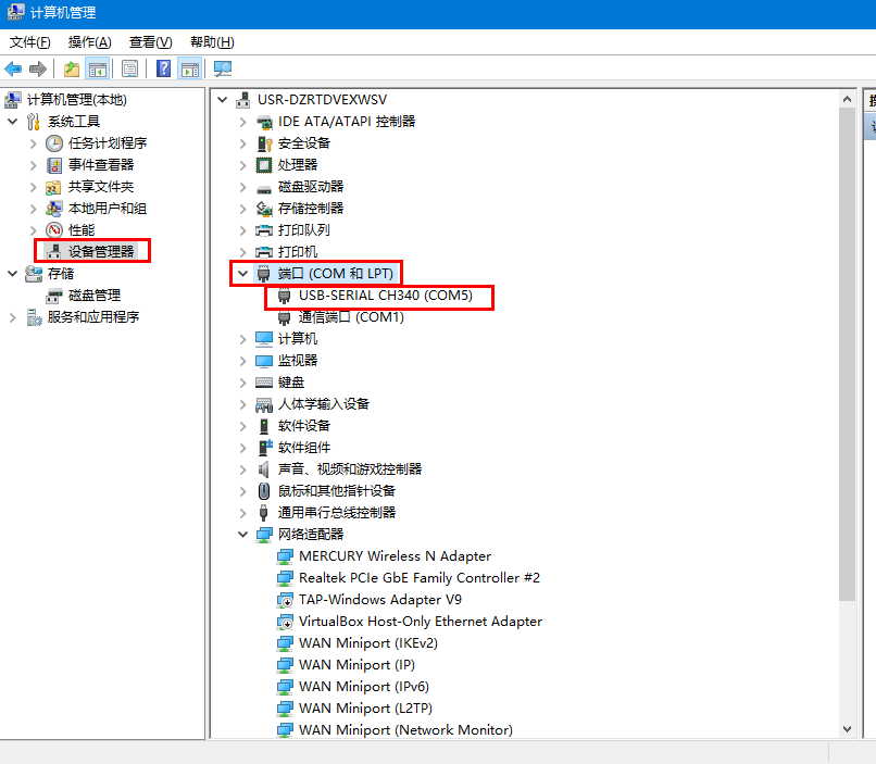 2、檢查USR-RS485串口線的COM口號,點擊電腦計算機,右擊鼠標(biāo),點擊設(shè)備管理器,查看端口,確認(rèn)USB-RS485串口線的COM口號,有人測試電腦是COM5。
