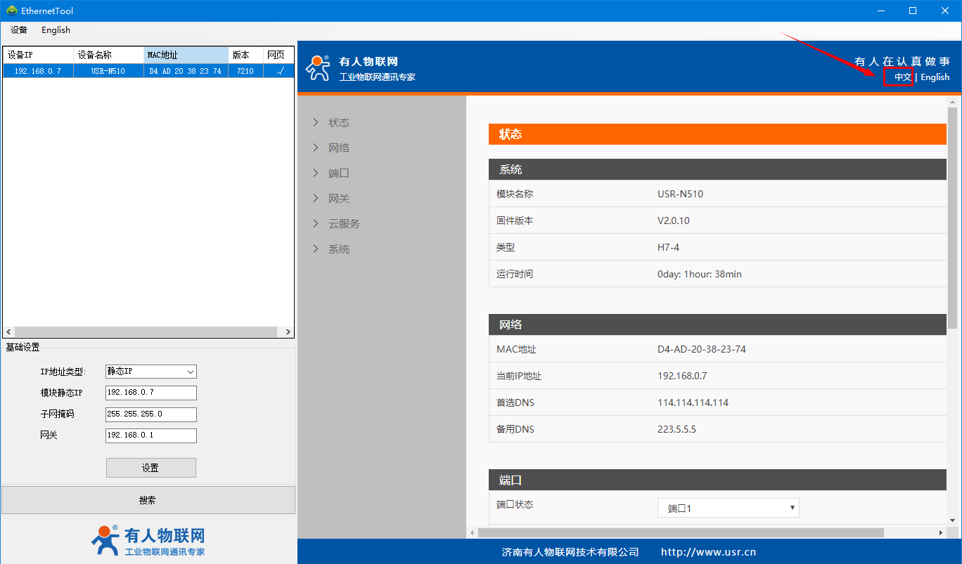 用H7系列配置軟件搜索N510設(shè)備,單擊搜索,搜搜到設(shè)備后雙擊設(shè)備。