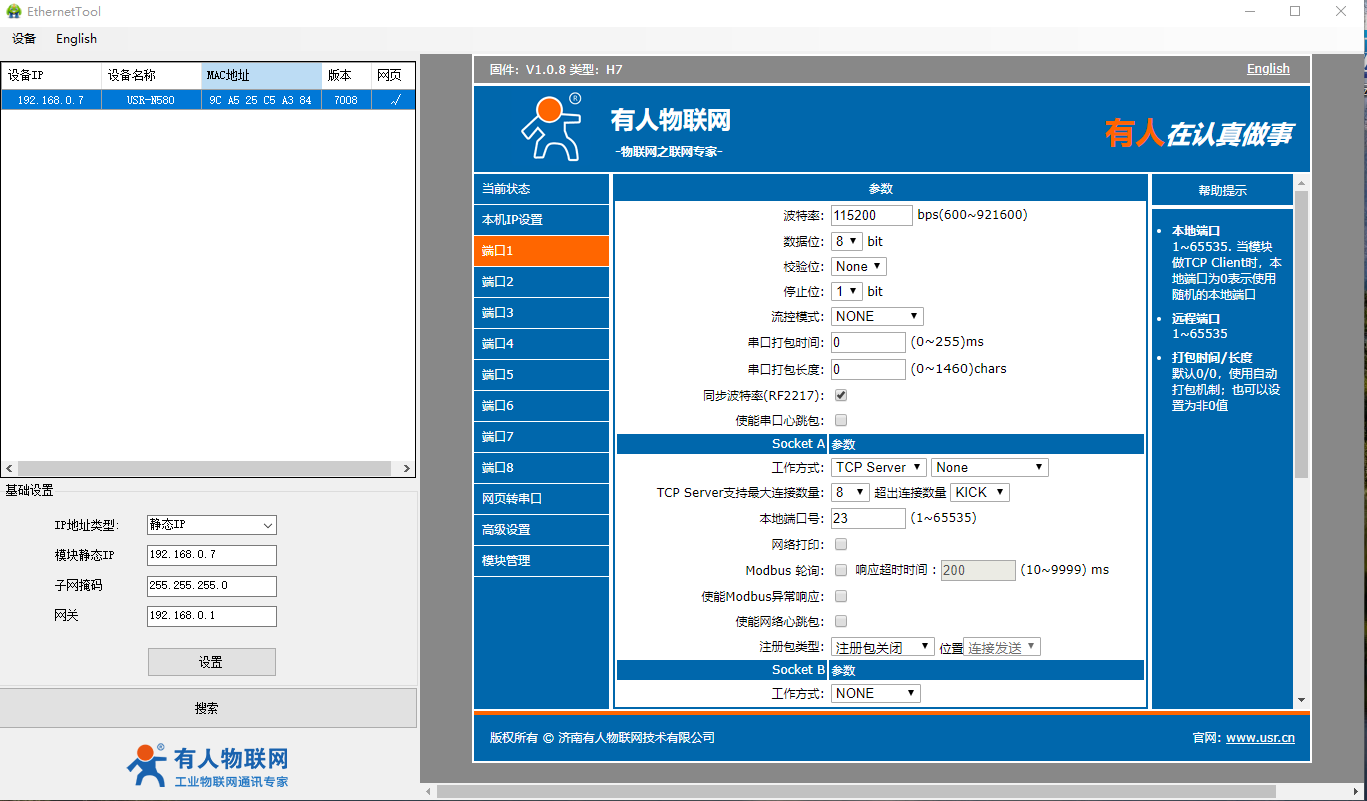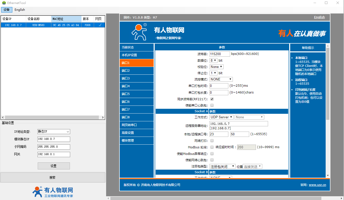 2、USR-N580-H7設(shè)置軟件: