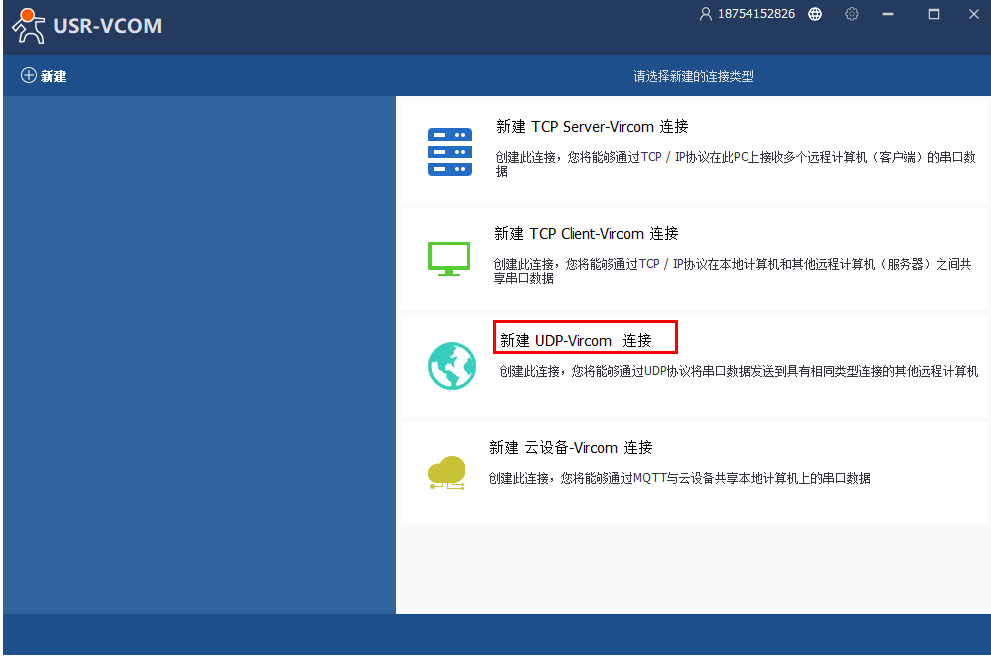 電腦下載的虛擬串口軟件,新建UDP-Vircom連接,添加一個虛擬串口COM1。遠(yuǎn)程IP填N580的IP,遠(yuǎn)程端口填N580的端口23。監(jiān)聽端口號填50。