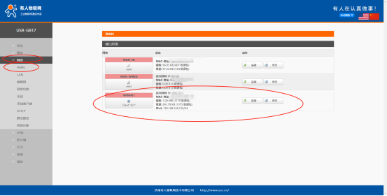 也可以從網(wǎng)絡(luò)--WAN,查看連接信息。