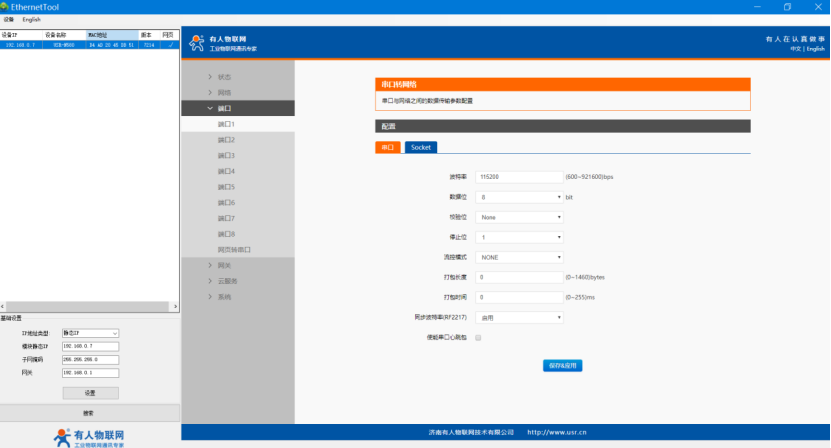 第二個N580 IP設(shè)置192.168.0.8,檢查端口1的RS485參數(shù)