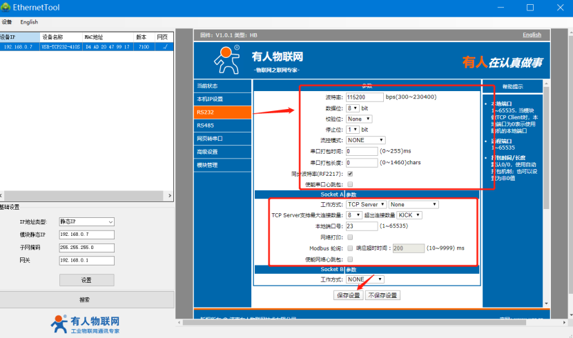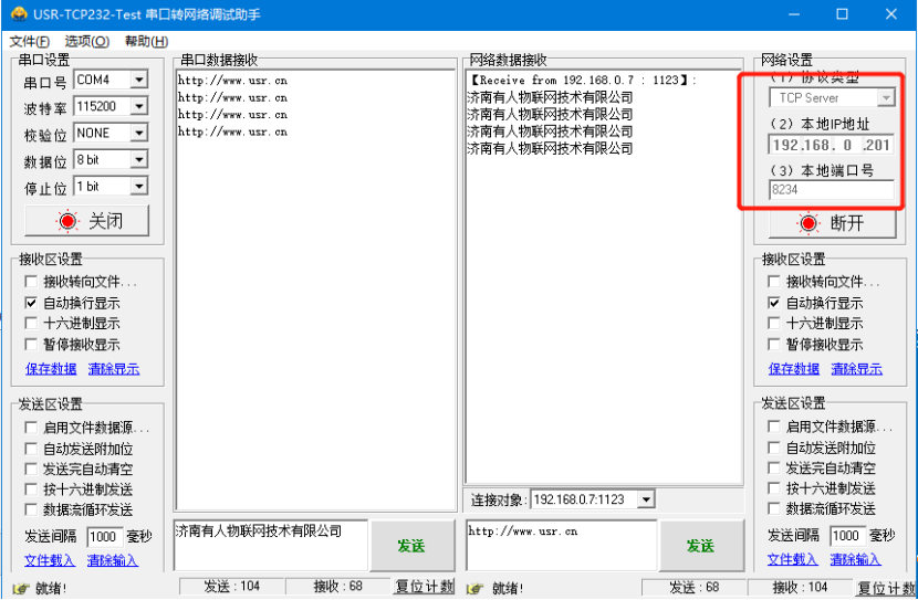 USR-TCP232-410S(HB)基本測(cè)試案例