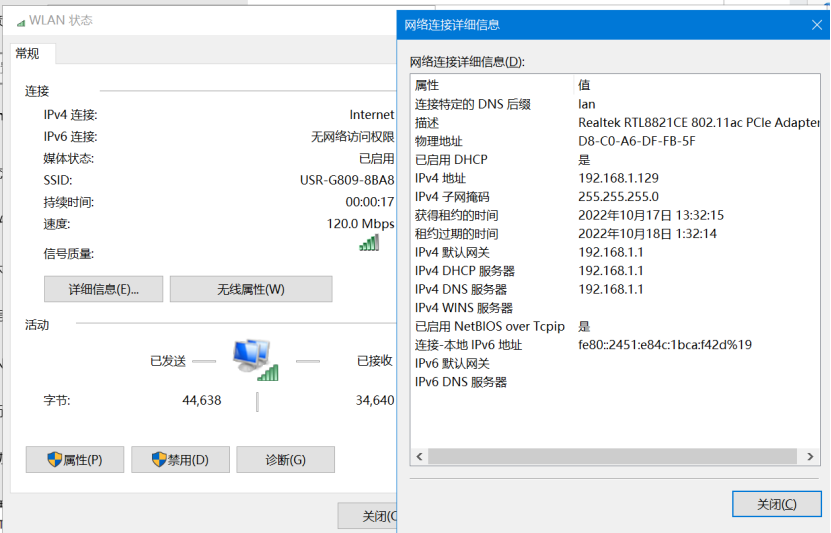 1、PC通過(guò)WIFI或者有線連接G809LAN口(G809WIF密碼wy2006.cn),電腦開(kāi)啟DHCP,自動(dòng)獲取IP,電腦會(huì)獲取到一個(gè)192.168.1.xx網(wǎng)段的IP地址.